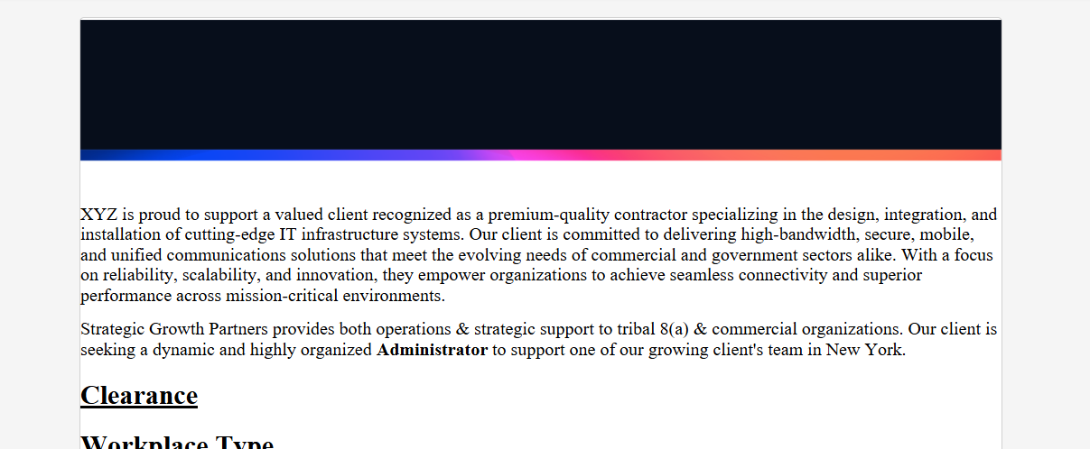 The JD body text should have proper left/right margins so it doesn’t stick to the edges.