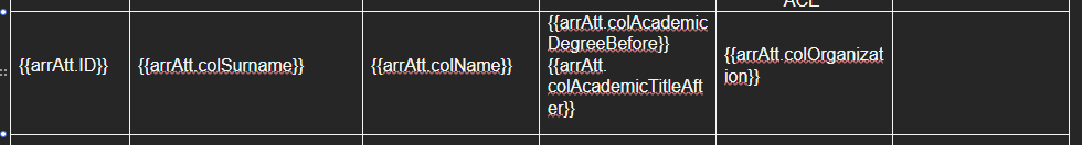 I do not use Plumsail web to create template. I have a .DOCX document, where the "arrAtt" is array of people who are going to attend a course.