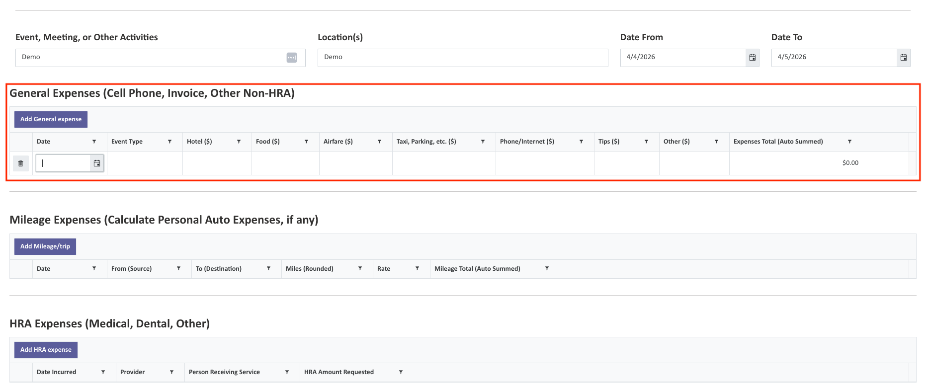 var rows = getRows(expense);