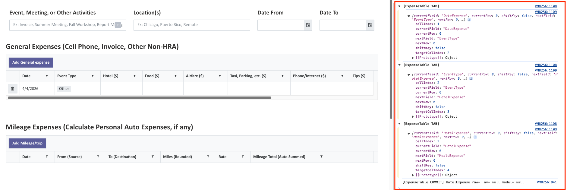//THIS is a companion of the DEBUG in section 10., subsection HARD TAB ORDER (ExpenseTable)