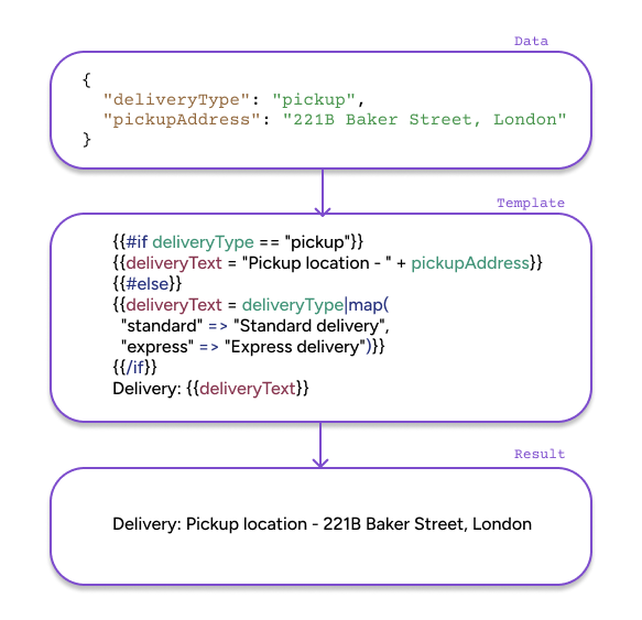 You can build more advanced logic inside #if / #else blocks in the Modern engine. It’s now possible to combine use map function and calculated properties when producing a single result.