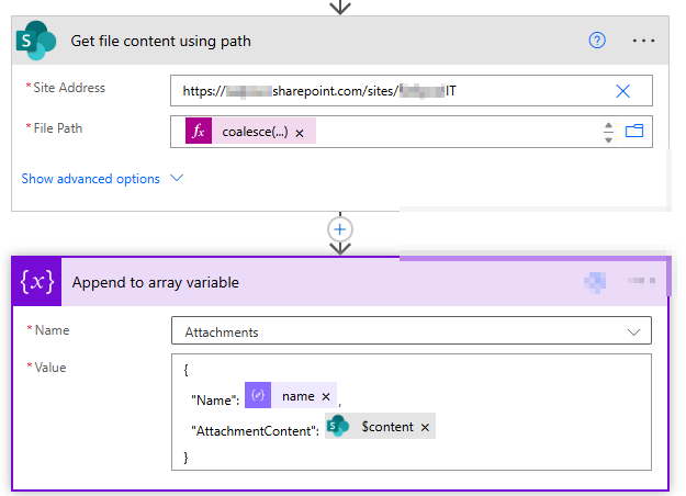 Nevertheless, I keep getting the error message that validation error(s) have occurred. Whether I convert the content to Base64 beforehand or use it directly from the SharePoint action to add it to the array, the error remains the same.