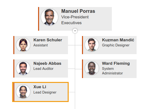 Is there any supported or recommended way to visually display an employee under an assistant, even if it requires custom JavaScript or CSS? I just want to manually position one specific employee under a specific assistant in the rendered Org Chart.