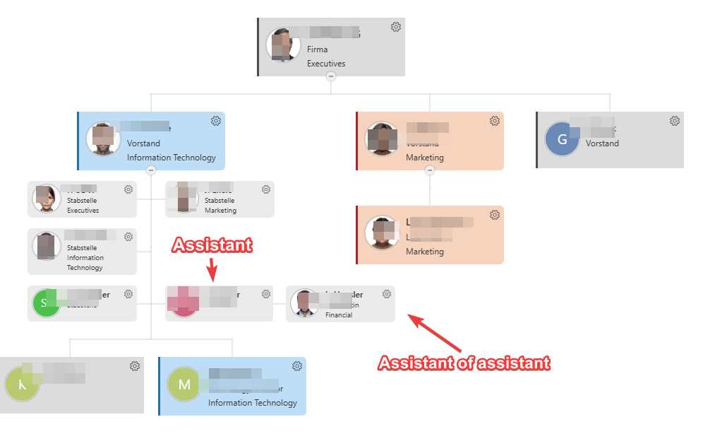 I have an employee who is configured as an assistant in the hierarchy. Now I would like to display another employee underneath that assistant, similar to how a normal subordinate would appear under a manager.