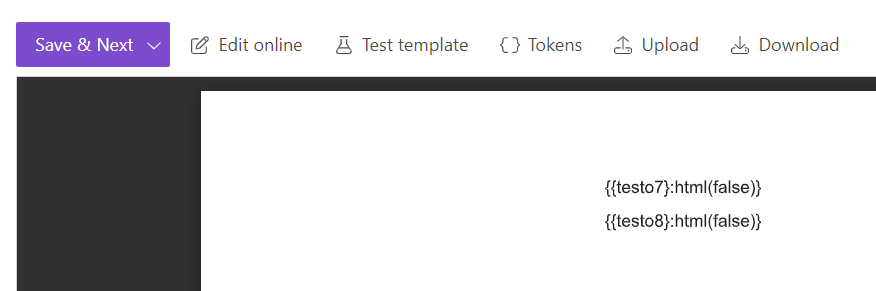 In the Plumsail process, we inserted the tokens {{testo7}:html(false)} and {{testo8}:html(false)}.