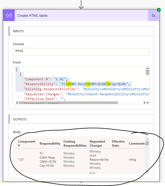 I'm utilizing Plumsail's Document service for the "Convert HTML to PDF". Alongside a finalized spreadsheet (as mentioned in the previous post), i would like to show the end user a PDF document of the requested changes only. As an aside, the reason for this is because Approvals do not read HTML and only support markdown (which doesn't work well for my case, unless otherwise advised).
