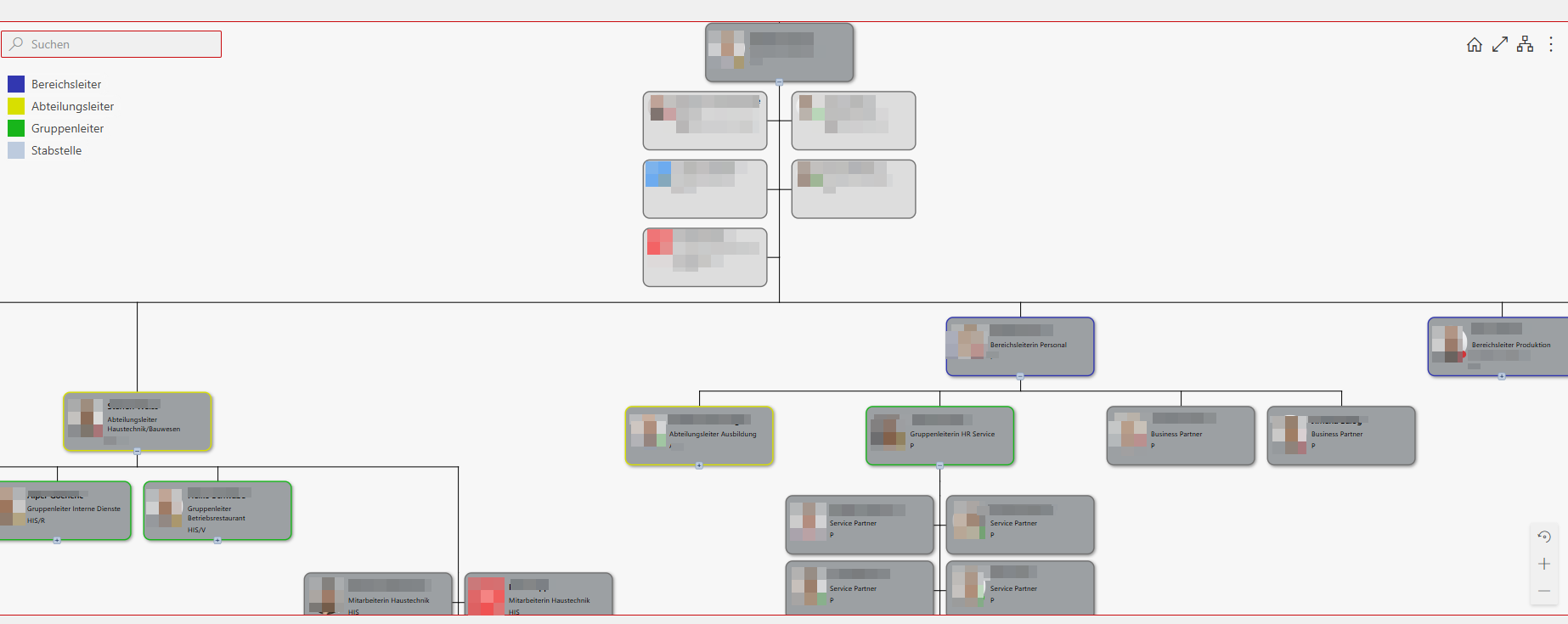 Currently, each box is tied to a specific employee ID. If that employee leaves the company, the spacing becomes incorrect. Ideally, the box should automatically align with others at the same hierarchy level who report to the same supervisor — for example, when a new department head is hired, their box should be positioned at the same height as the other department heads under the same manager.