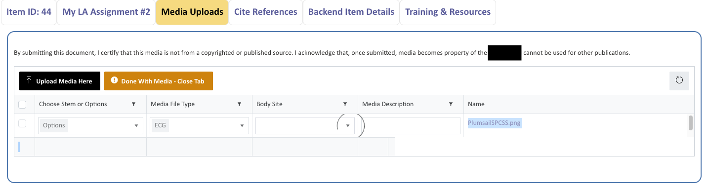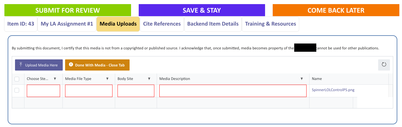 error: 'MISSING REQUIRED FIELDS: Go to the Media Uploads tab to address.',