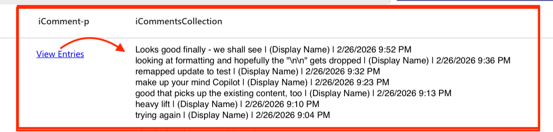 I was testing a drop-in HTML option and liked how it looked but it was a nightmare to configure so I abandoned it but this was the early look & feel that I really liked. It’s a Microsoft-like layout and the stakeholders would ideally like to be able to “like” and “reply to” comments much like Teams, etc. If CSS and JS could morph a List or Library control into something like that, that would be fantastic but I haven’t found any in the community posts yet but I have missed some!