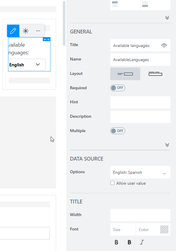 I added the dropdown with the available languages, but no information is displayed on the dropdown field