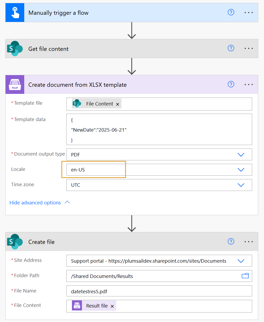 Our customer Wilka uses Plumsail Documents to generate PDF files with Microsoft PowerAutomate. It has now been discovered that the date and number formats are not being written correctly to the PDF. In the original file (Excel), the formats are in German, but in the PDF, they are in English. Here are some screenshots: