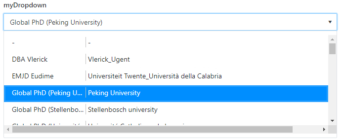 I succeeded to modify the options of a dropdown control by using a custom template.